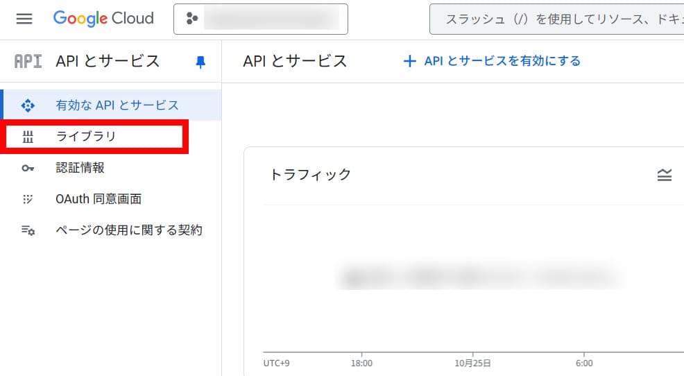 次に、作成したプロジェクト内で「APIとサービス」→「ライブラリ」を開き、「Google Analytics Data API」を検索して有効化します。