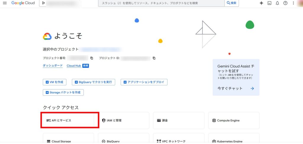 1.Google Cloud Consoleで「APIとサービス」を選ぶ